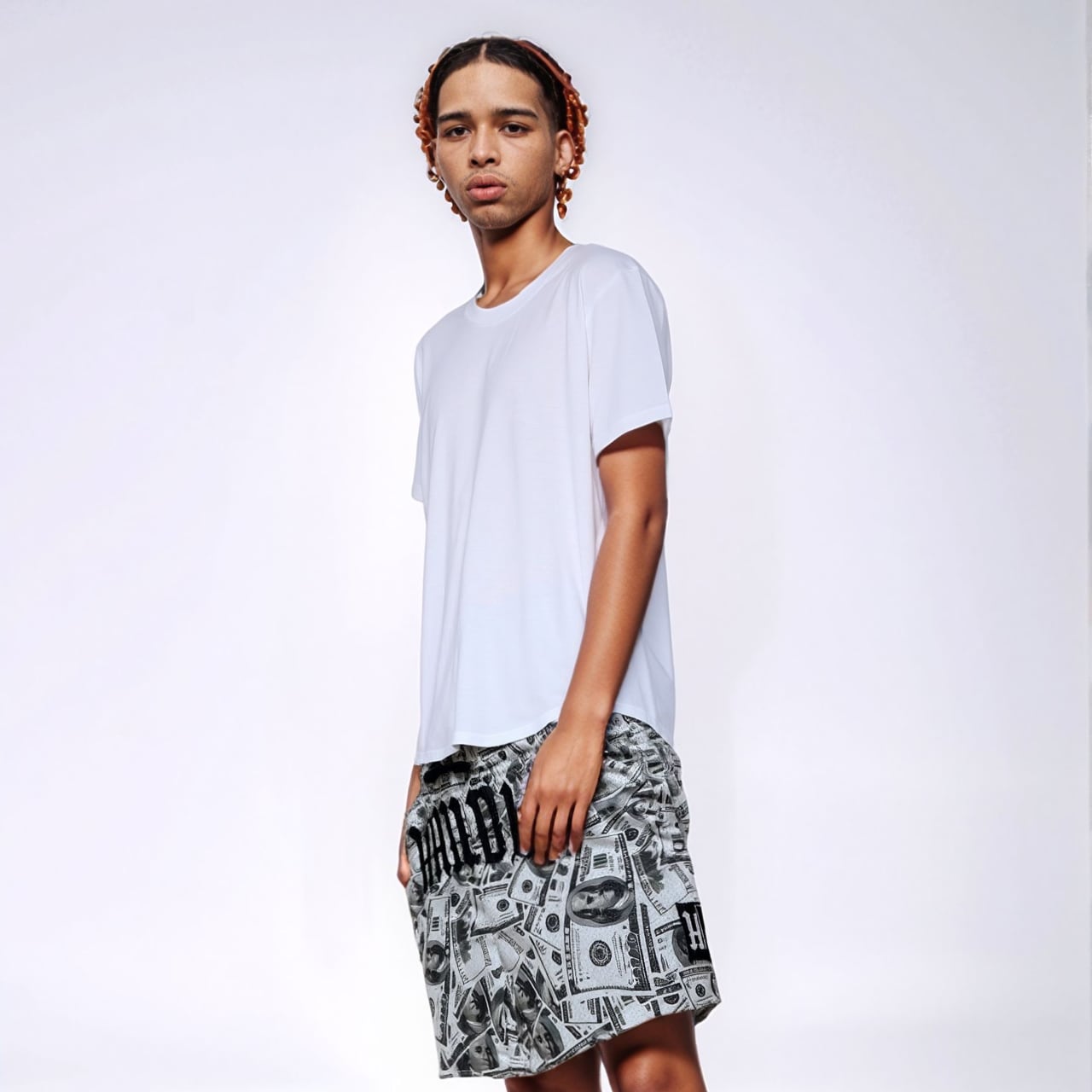 大胆な100ドル札の総柄プリントが目を引く、