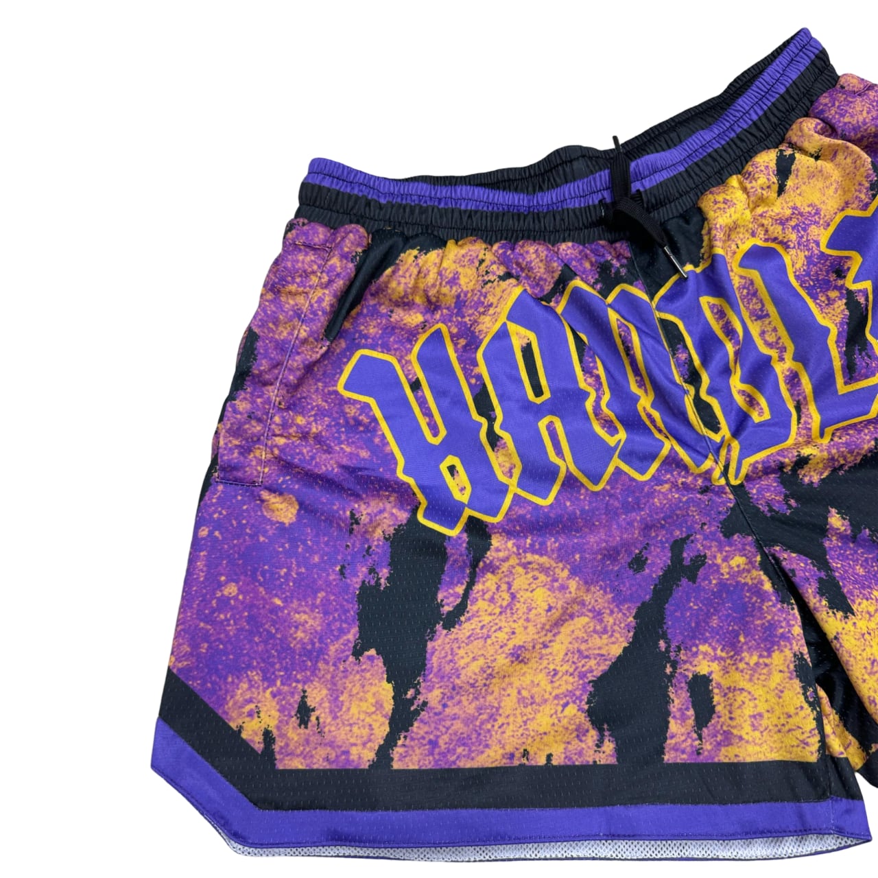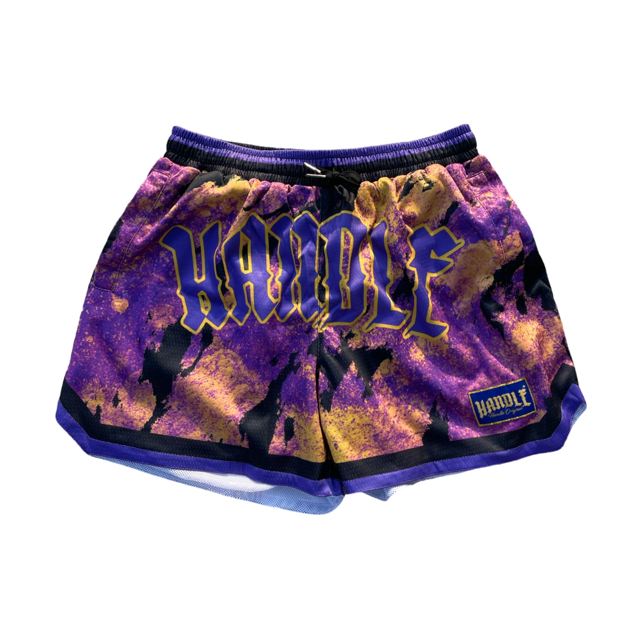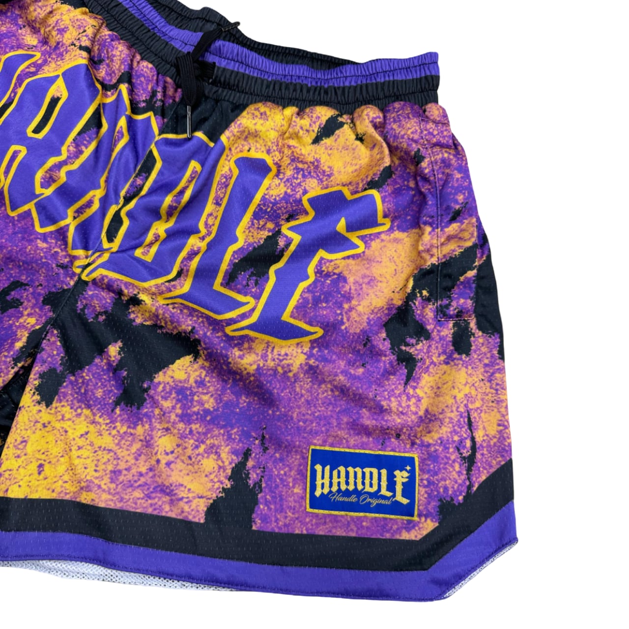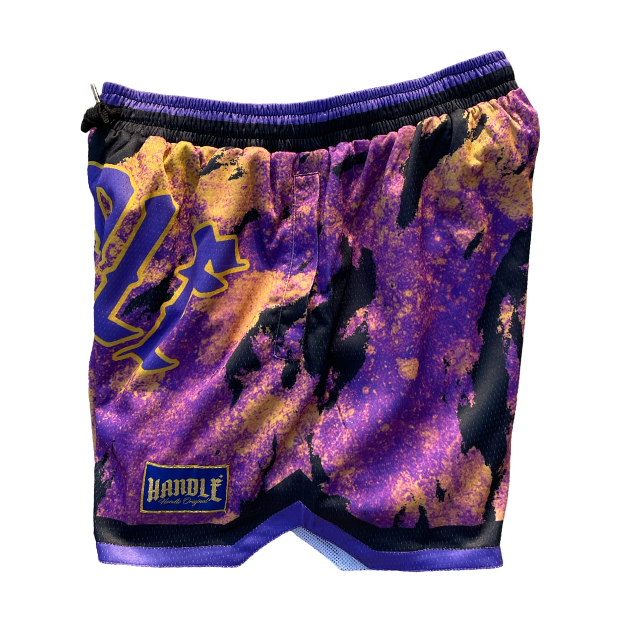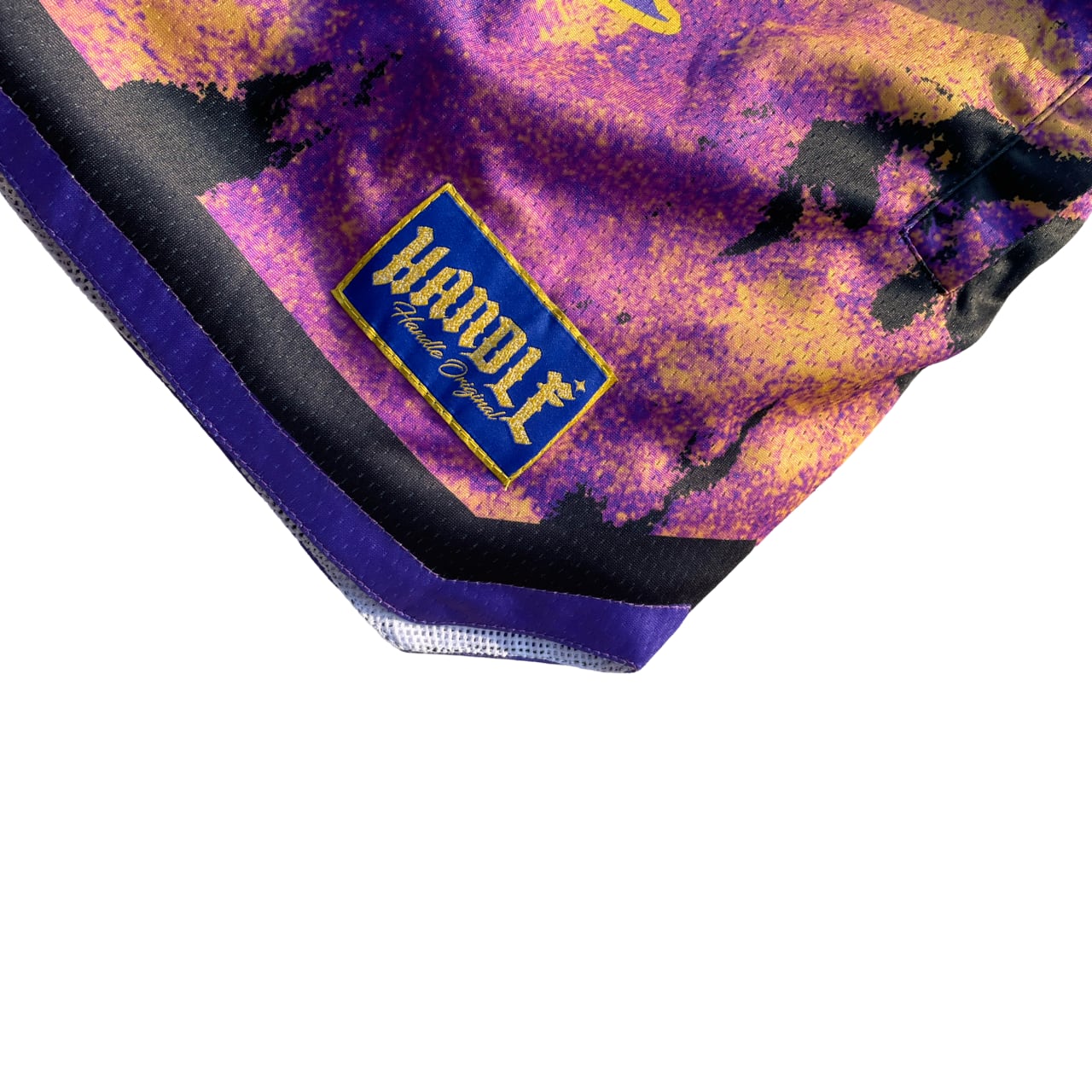 紫と黄のスプラッシュが暴力的なほどに派手で、フロントには大胆なHANDLEロゴを配置。