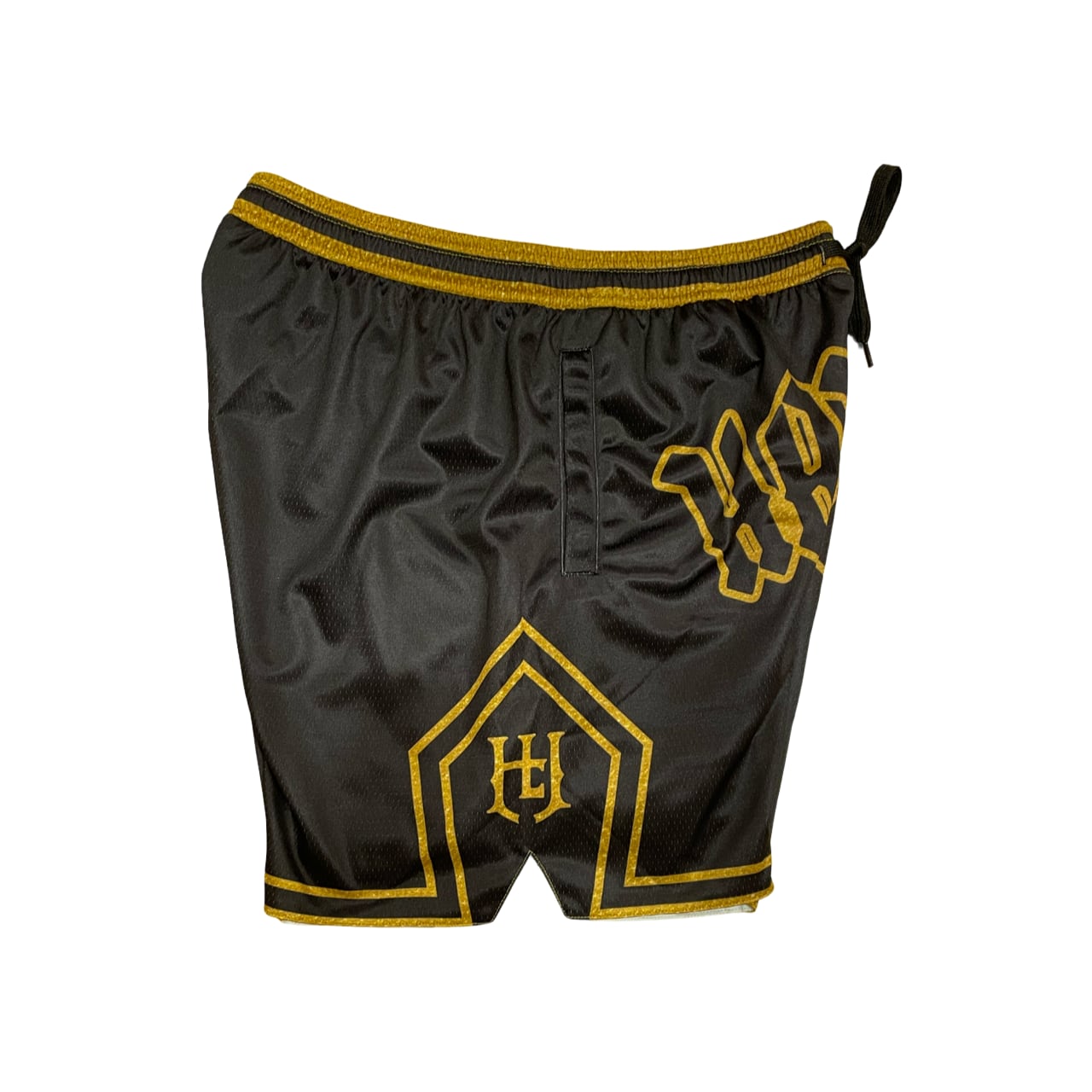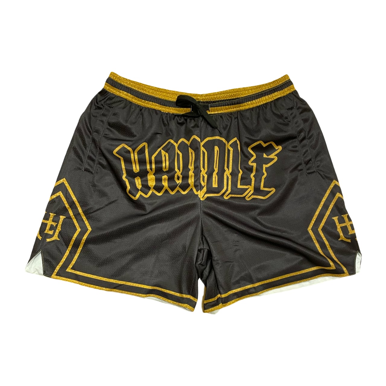 “HANDLE” Gothic Mesh Shorts — Black × Gold